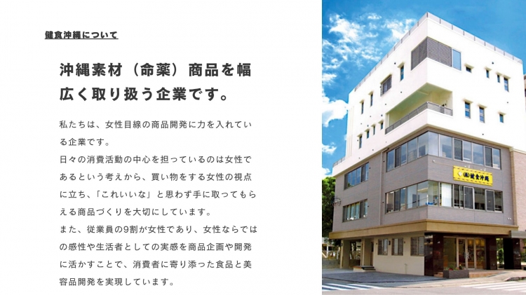 沖縄素材(命薬)商品を幅広く取り扱う企業です。