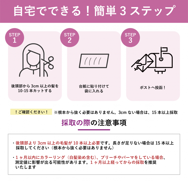 弊社のホルモン量測定は、少量の毛髪から測定が可能です。