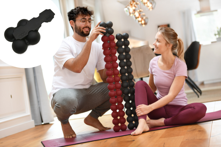 背骨に沿って並んだボールが深層筋にアプローチしながら、マッサージ・姿勢調整・安定性トレーニングなど、多様な使い方を可能にします。