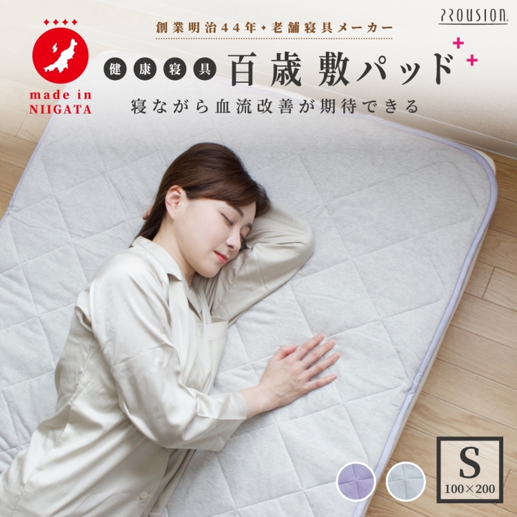 誰でも毎日簡単に、無理なく続けながら健康の保持増進に繋がるように、健康寝具【百歳】は、普段お使いの寝具と一緒にお使いいただける仕様です。ただ単に長寿を目指すのではなく、いつまでも元気に過ごし、”健康寿命”が“100歳”まで伸びますように・・・との願いを込めて七穂の健康寝具を~百歳~と名付けました。 天然由来の素材を用いた安心・安全な製品を新潟の自社工場にて職人が一枚一枚丁寧にお作りしています。